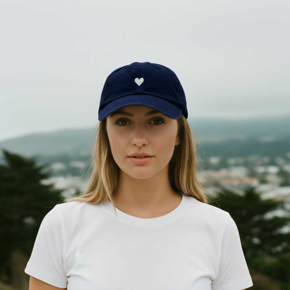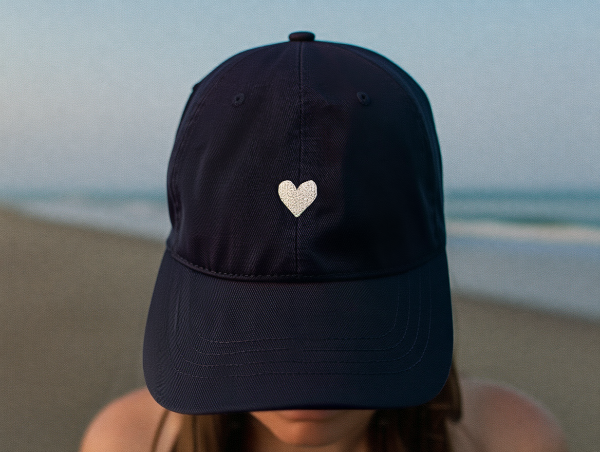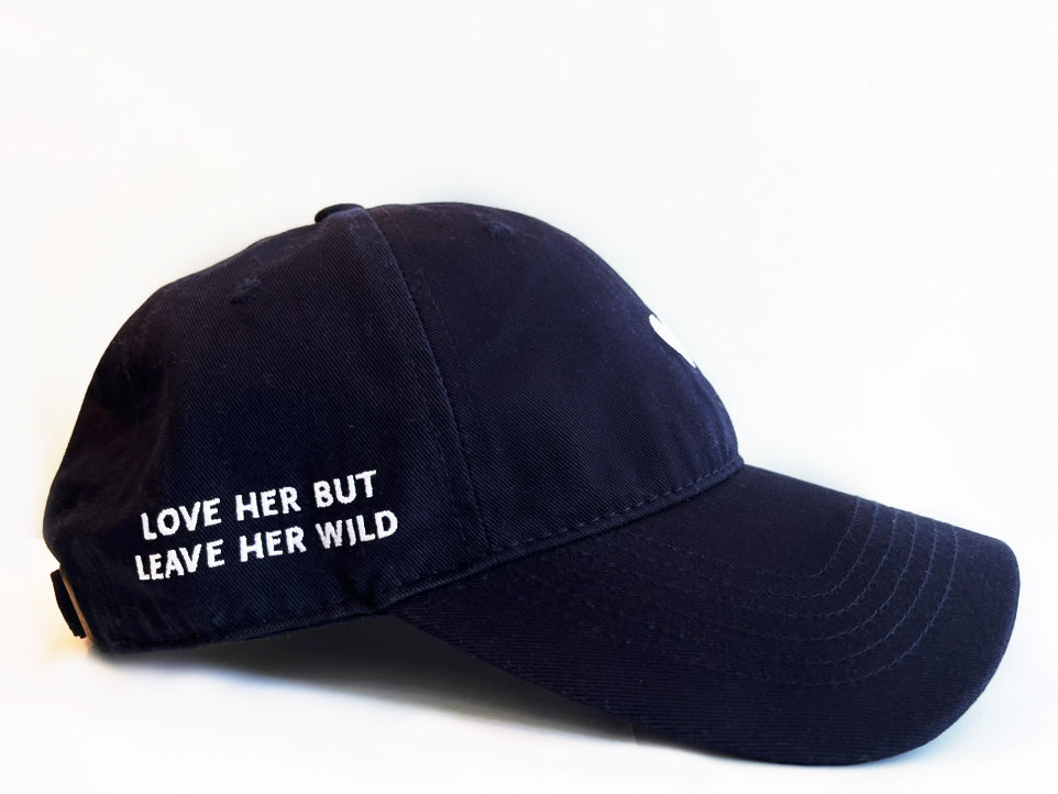 Our bestselling embroidered heart hat in Navy blue features the poem "Love her but leave her wild" by Atticus