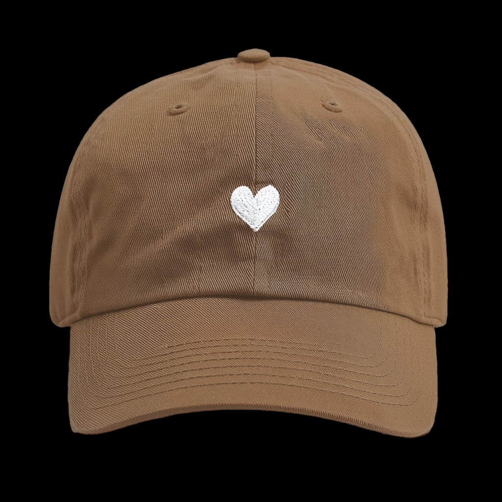 The Embroidered Heart Cap is a bestselling mocha pigment-dyed cotton cap, embroidered with a heart on the front and "LOVE HER BUT LEAVE HER WILD" on the right side. This brushed cotton hat combines durability, comfort, and timeless style, making it a must-have accessory for everyday wear.