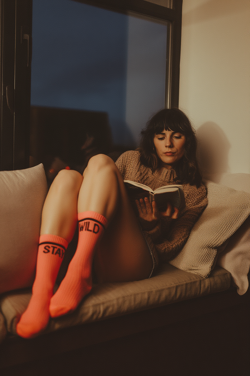 Statement socks with a poetic twist—the “Stay Wild” ombre crew socks bring color and comfort to daily outfits. An easy gift and a fun wardrobe staple.