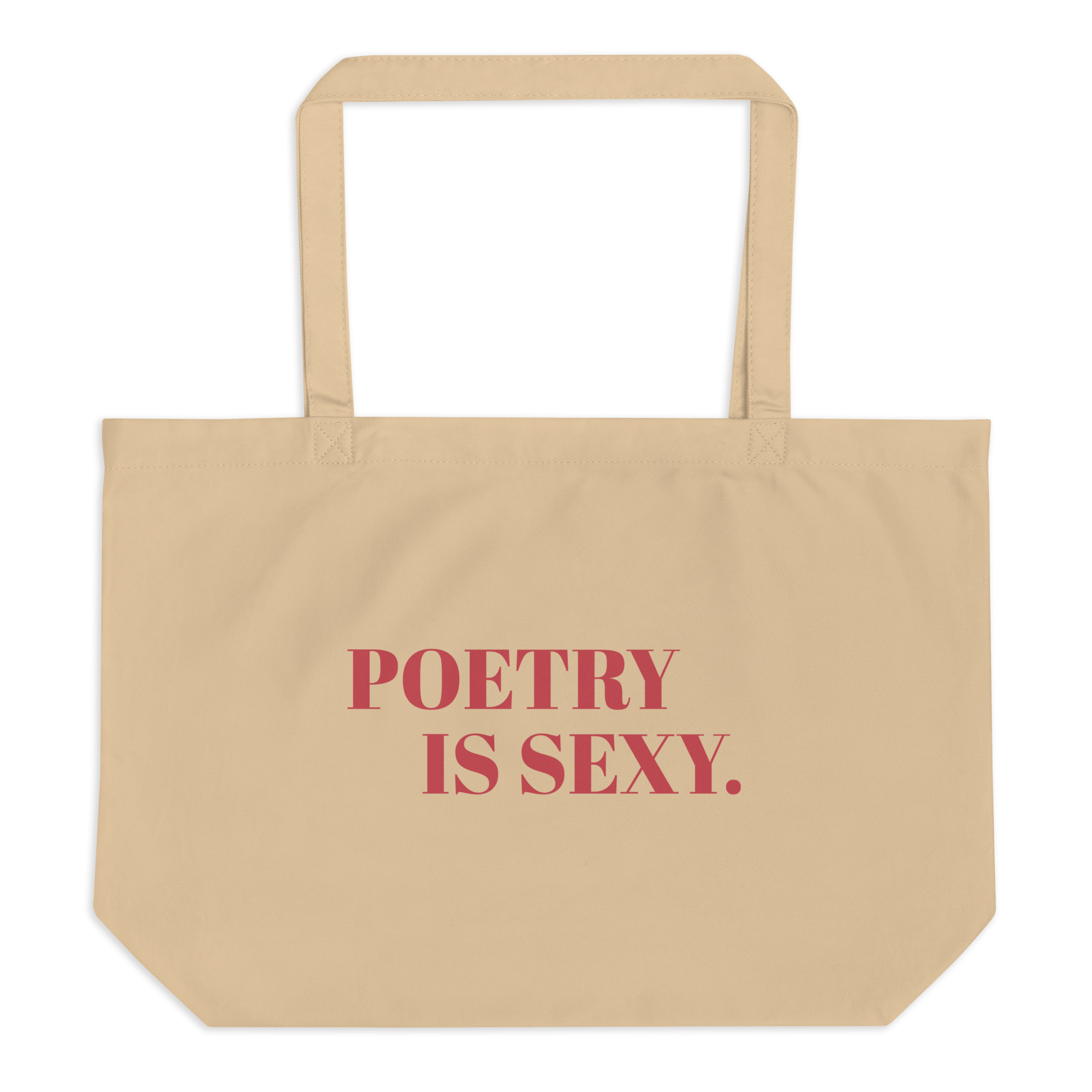 "POETRY IS SEXY." printed on the front of a large eco tote.